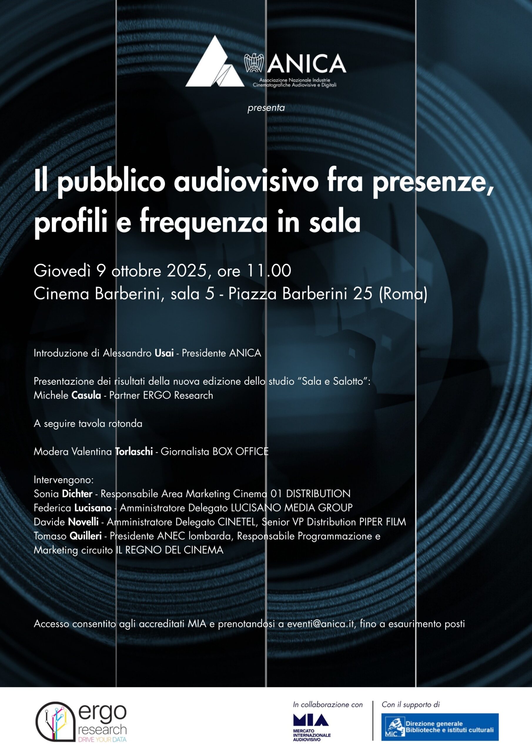 Evento organizzato da Anica con il supporto della Direzione generale Biblioteche e istituti culturali del MIC in occasione della undicesima edizione del MIA | Mercato Internazionale Audiovisivo.