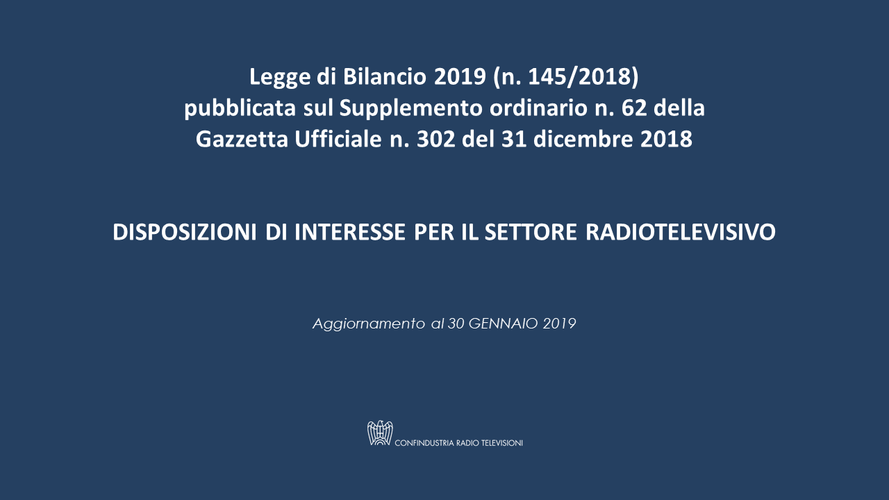 Legge di Bilancio 2019: aggiornamento disposizioni RadioTV