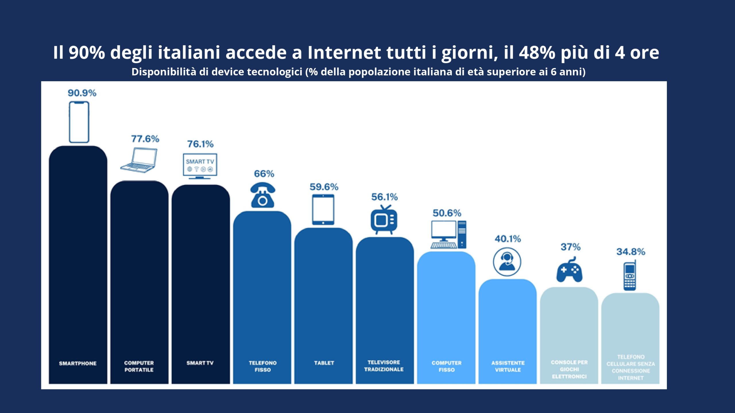 Il rapporto AGCOM fotografa un Paese connesso ma impreparato di fronte a hate speech, disinformazione e algoritmi opachi. In un’Italia sempre più immersa nel digitale, la capacità di orientarsi in modo consapevole e sicuro nel mondo online resta ancora largamente insufficiente. È quanto emerge dal nuovo Rapporto AGCOM sull’alfabetizzazione mediatica e digitale, presentato alla stampa dal presidente Giacomo Lasorella insieme al commissario Massimiliano Capitanio e al direttore del Servizio Studi Mario Staderini. L’indagine, basata su un campione rappresentativo di oltre 7.000 individui dai 6 anni in su, rivela un quadro ambivalente: da un lato, il 90% degli italiani utilizza Internet quotidianamente, con quasi la metà collegata per oltre quattro ore al giorno; dall’altro, una larga fetta della popolazione si dimostra vulnerabile ai pericoli della rete.