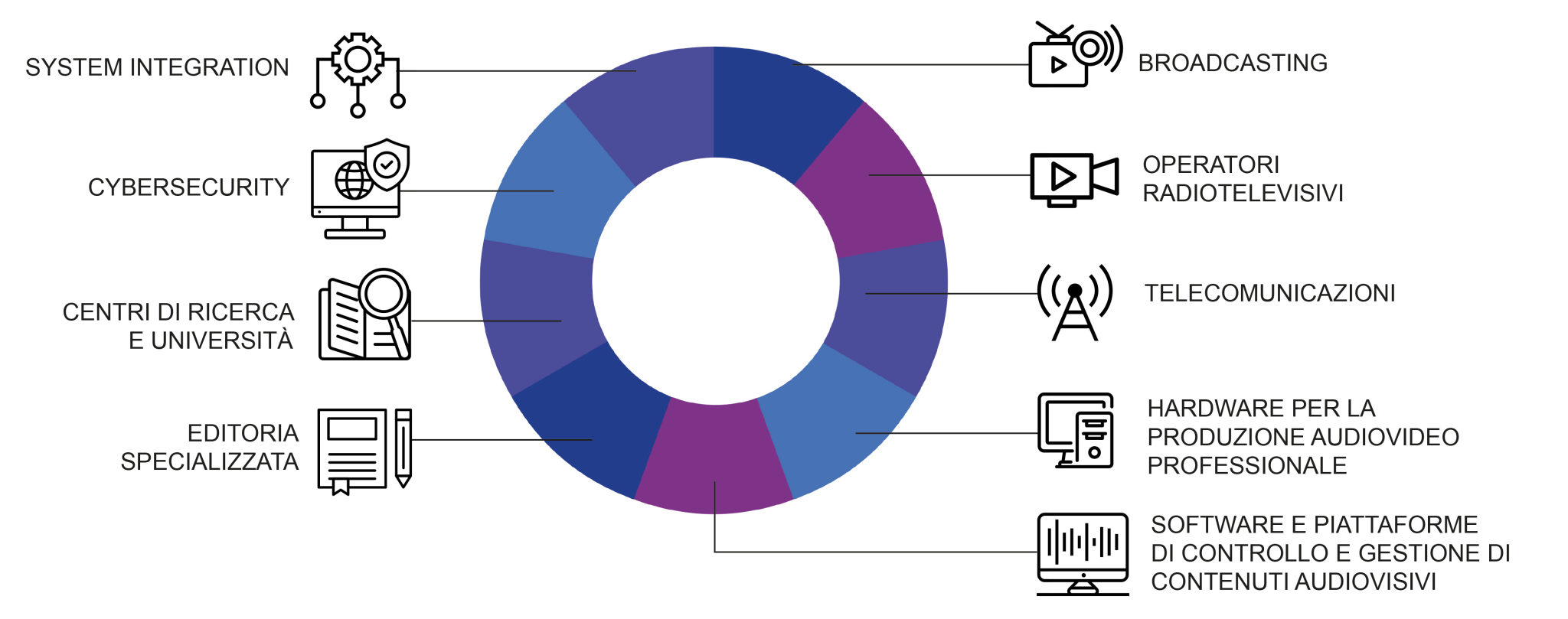 HD Forum Italia è un’associazione senza scopo di lucro fondata nel 2006 per promuovere l’uso di contenuti audiovisivi e multimediali, prodotti e tecnologie, in HD, Ultra HD e altre soluzioni audiovisive evolute (da cui il claim “HD and beyond”) e che ha prodotto molta letteratura tecnica. L’Assemblea Ultra HD Forum Italia 2024 si è svolta all’interno dell’evento Milano Audiovisual Forum giunto alla sua seconda edizione incontro che prevede networking, masterclass e un’area B2B, qui sotto le categoria merceologiche rappresentate nell’edizione 2024 patrocinata anche da CRTV.