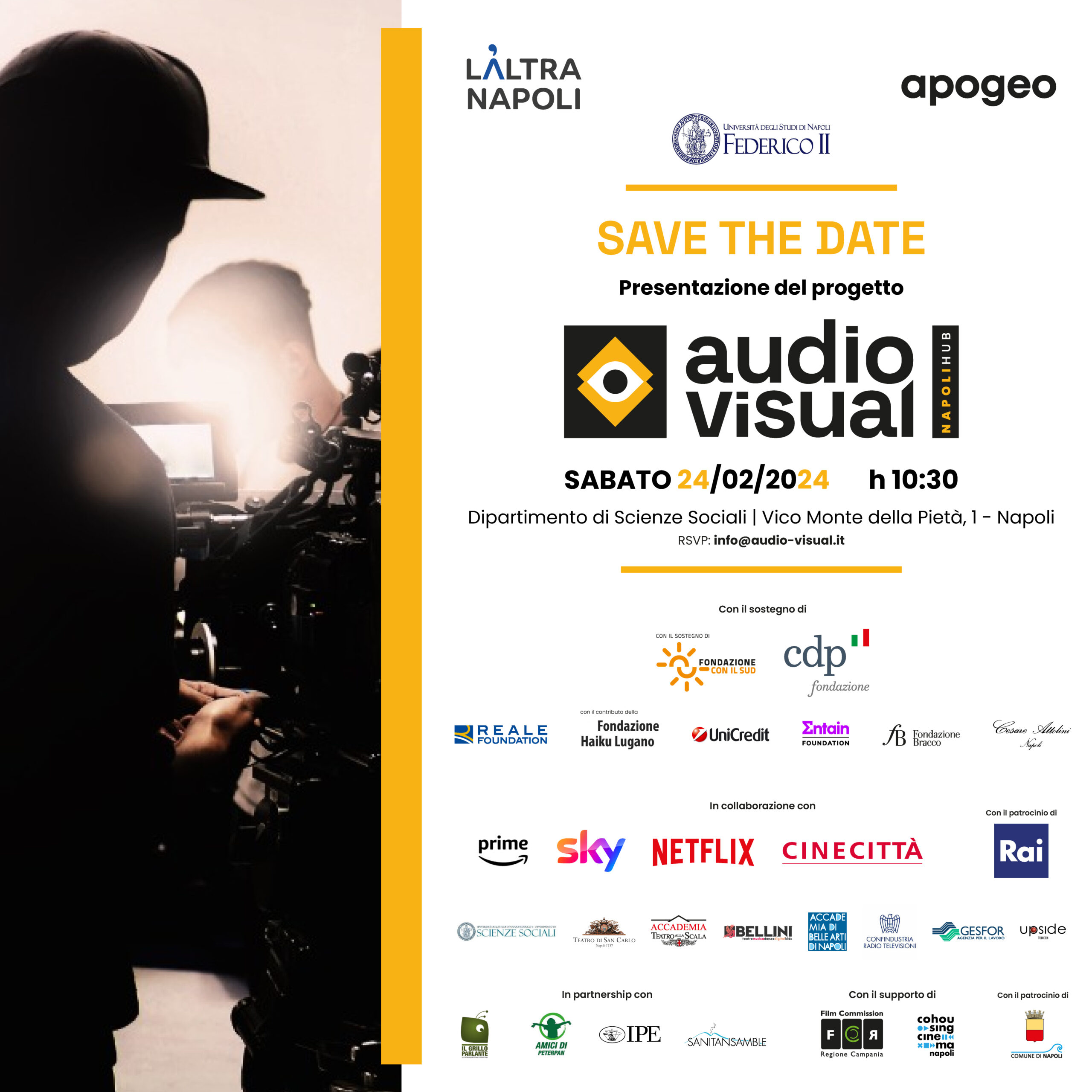 Confindustria Radio TV partner dell’iniziativa a forte valenza sociale. Sabato 24 febbraio presso il Dipartimento di Scienze Sociali dell’Università degli Studi di Napoli Federico II, è stato presentato il progetto Audiovisual Napoli Hub, un percorso di formazione professionale, completamente gratuito, nel settore della produzione audiovisiva e cinematografica, rivolto a giovani a rischio di marginalità sociale, culturale ed economica. Destinatari dell’iniziativa sono 80 giovani, tra i 18 e i 29, c.d. NEET, a cui si aggiungeranno anche 20 studenti del Dipartimento di Scienze Sociali della Federico II.