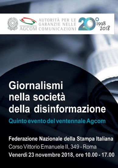 Giornalismi nella società della disinformazione. Quinto evento del ventennale AGCom – Documento pre-print del convegno del 23 novembre 2018